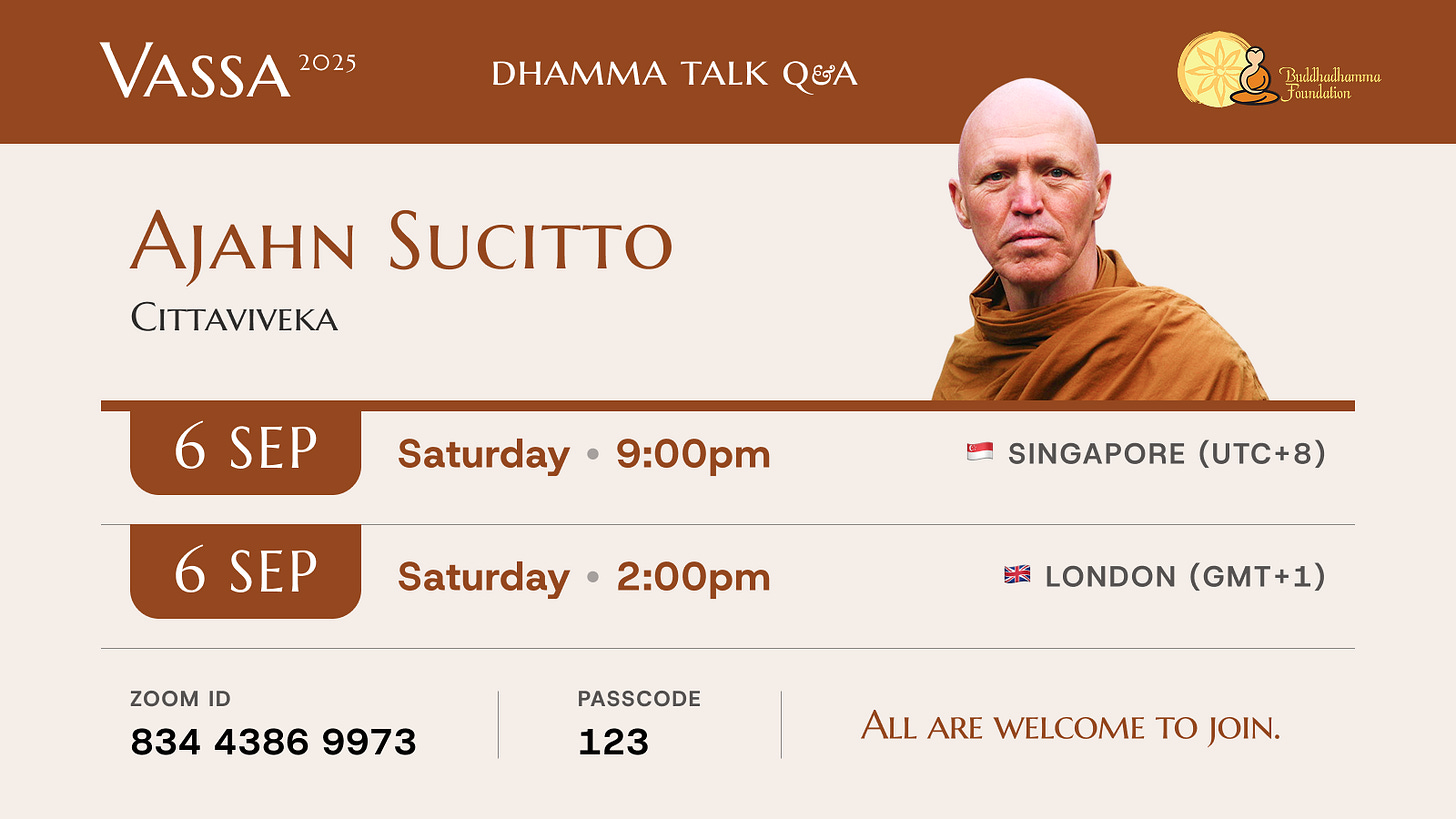 Zoom link for Dhamma Stream sessions: https://bit.ly/AjSucitto